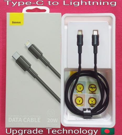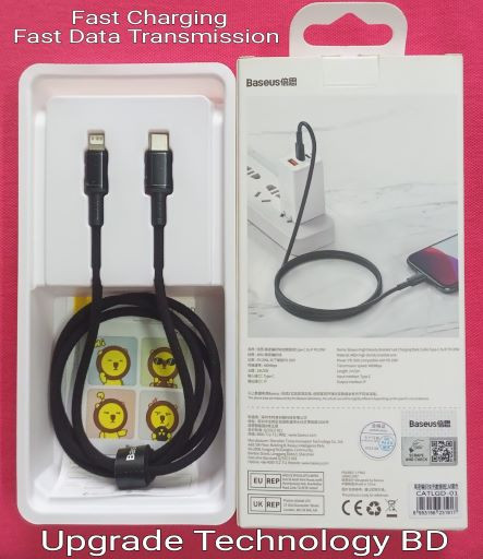 • Baseus High Density Braided Type-C to iP PD 20W Lightning Data Cable 1M -Black (Catlgd-01) High Density Braided For the most demanding. Extremely fast Type-C – Lightning cable. It supports charging in the new Power Delivery 20W technology and 480Mbs data transmission. The presented variety is characterized by durability and reliability. You don’t have to worry about kinks and many other related problems. High-quality materials were used for the production of cables – aluminum and premium nylon. The connection points are carefully designed, there are no backlash and other shortcomings that you often encounter. The cable is compatible with the new iPhone 12 and back charging standard.