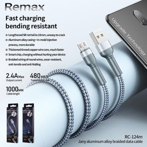 Product Details of Remax RC-124m 1M Braided Round Micro USB Interface 2.4A Fast Charging USB Data Cable for Devices