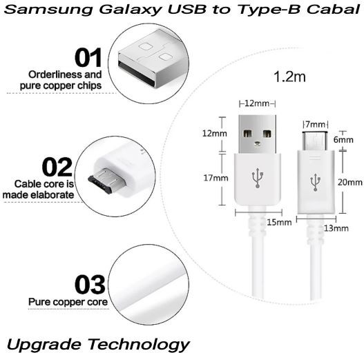 Product Details of Samsung USB to Type-B 3A Fast Charging with Data Transmission Cable 1.2M for Galaxy all Models with Type-B Charging Port